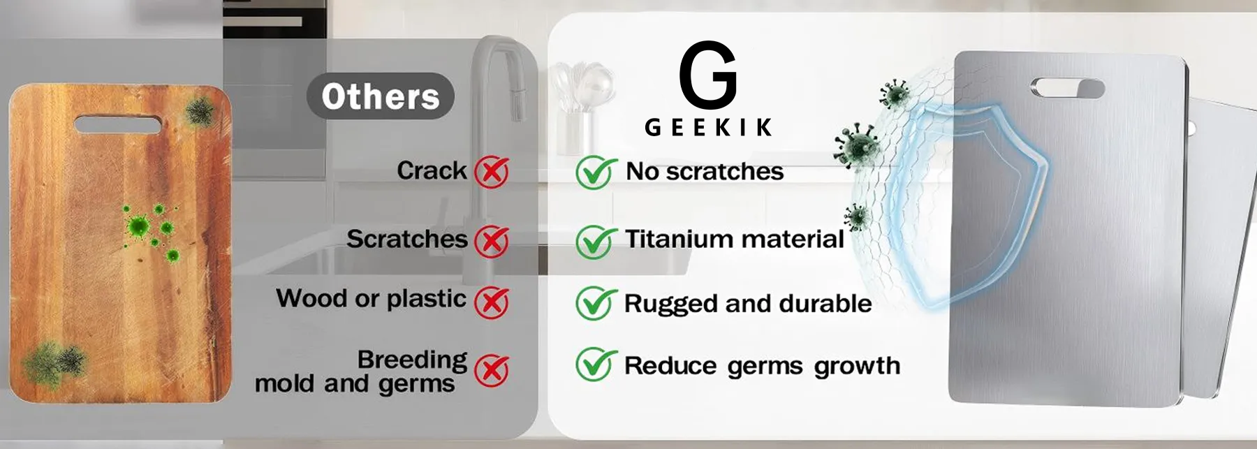 Experience Unmatched Durability And Cleanliness With Geekik Titanium Cutting Board